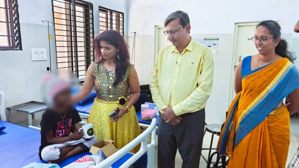 The initiative, led by philanthropist and Memon Biryani owner Irfan Sait, aimed to bring small comforts to young patients enduring rigorous treatment. Noted Kannada playback singer Dr. Samita Malnad personally distributed the mugs, lending her presence to lift the spirits of children and their families.