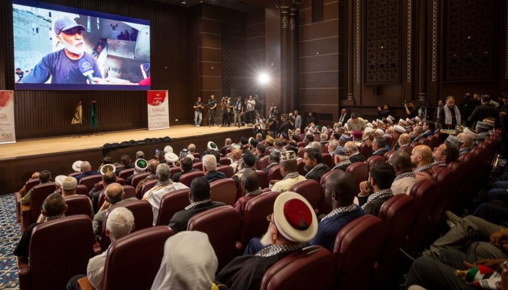 A: By highlighting the resilience of Gaza’s people, comparing their endurance to the trials of early Islamic history, and calling for global Muslim solidarity.