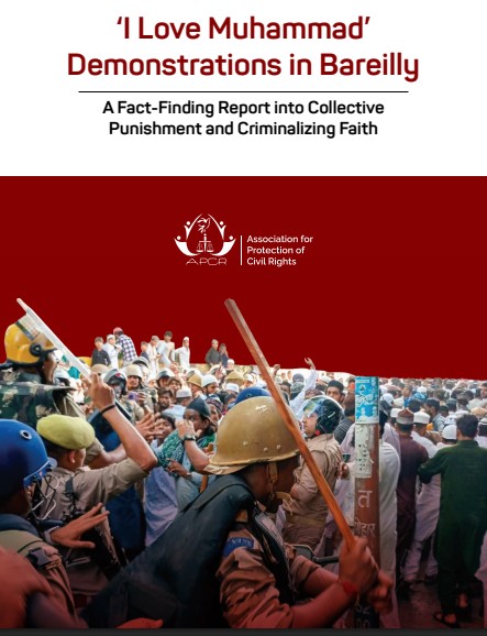 Bareilly, Uttar Pradesh: A recent fact-finding report by the Association for Protection of Civil Rights (APCR) has accused authorities in Uttar Pradesh’s Bareilly of “collective punishment” and “criminalization of faith” in response to a peaceful demonstration linked to the ‘I Love Muhammad’ campaign. The report, based on on-ground testimonies, legal analysis, and field observations, raises serious concerns about arbitrary arrests, disproportionate force, and the demolition of Muslim-owned properties without due process.