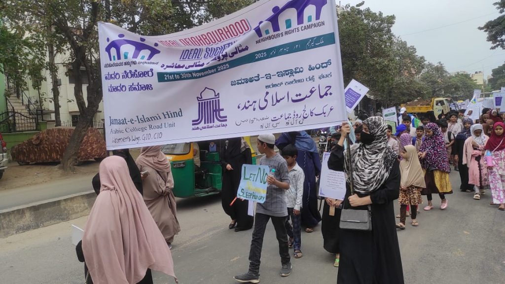 Bengaluru: In a powerful display of community spirit and civic education, a spirited children’s rally illuminated the streets of HBR Layout on Saturday, championing the cause of neighbourly harmony and social responsibility. The event, successfully organized by the Women’s Wing of Jamaat-e-Islami Hind, Arabic College Road (JIH–ACR), aimed to embed the values of compassionate and respectful coexistence within the public consciousness.