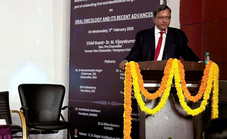 Bangalore, February 14: With India witnessing a alarming surge in oral cancer cases among young adults, leading oncologists and dental surgeons convened at Dayanand Sagar College of Dental Sciences in Bangalore for a Continuing Dental Education (CDE) programme on “Oral Oncology & Recent Advances,” emphasizing the critical role of early detection and prevention in combating the disease.